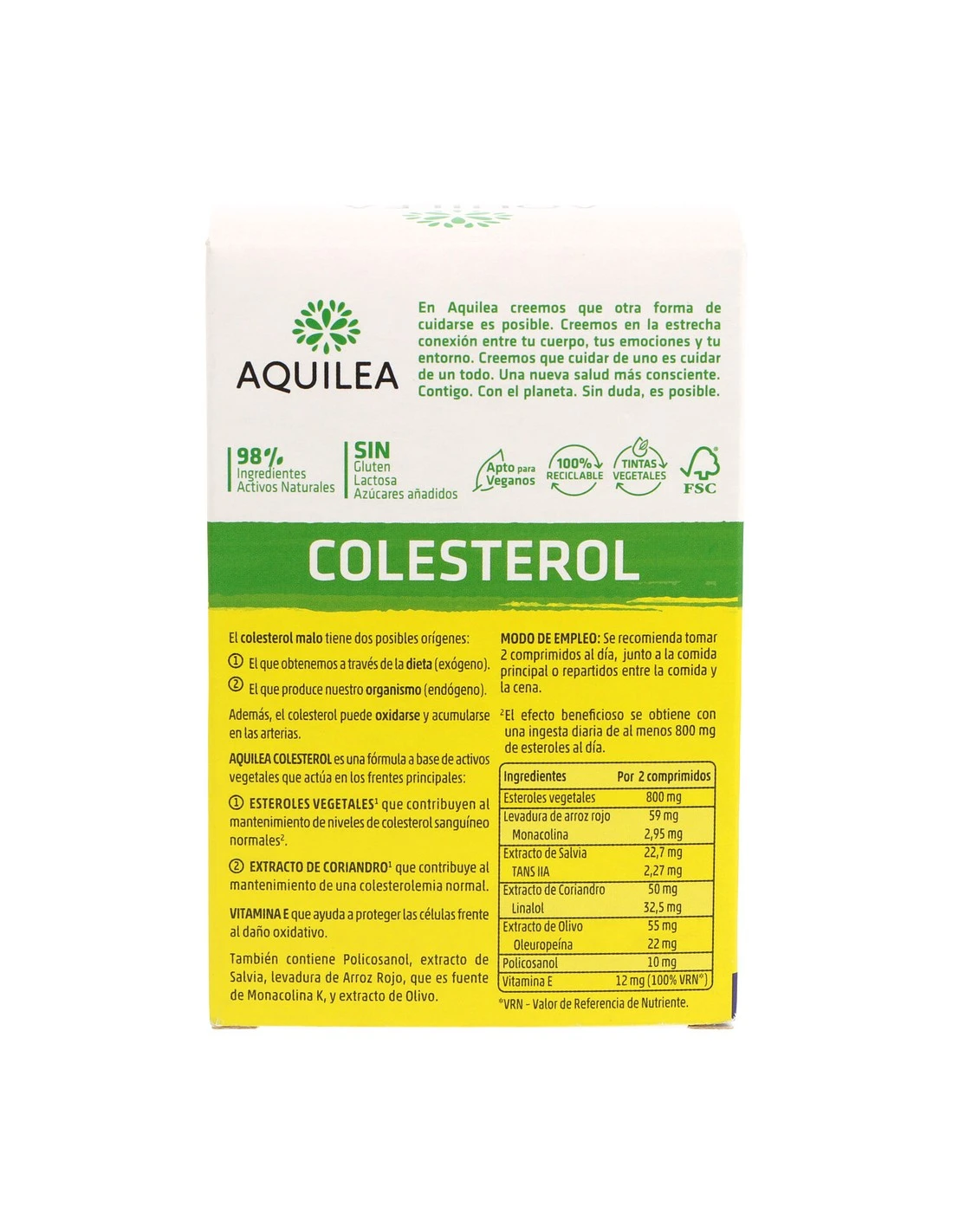 Aquilea Colesterol comprimidos ayuda a mantener los niveles normales de colesterol a través de tres vías: