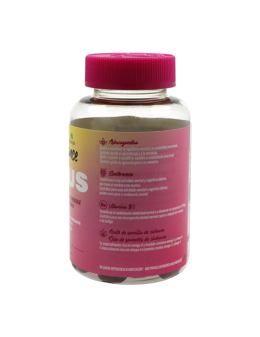– **Ashwagandha (Sensoril®)**: Planta adaptógena que contribuye a la estabilidad mental y al bienestar emocional, favoreciendo la memoria y la capacidad de aprendizaje. – **Eleuterococo**: Conocido por sus propiedades estimulantes, ayuda a mantener el rendimiento mental y la concentración en momentos de esfuerzo intelectual. – **Vitamina B5**: Contribuye a mejorar el rendimiento cognitivo y a reducir el cansancio y la fatiga. – **Aceite de semilla de cáñamo**: Rico en ácidos grasos esenciales omega-3, omega-6 y omega-9, fundamentales para el buen funcionamiento del cerebro y el bienestar general.