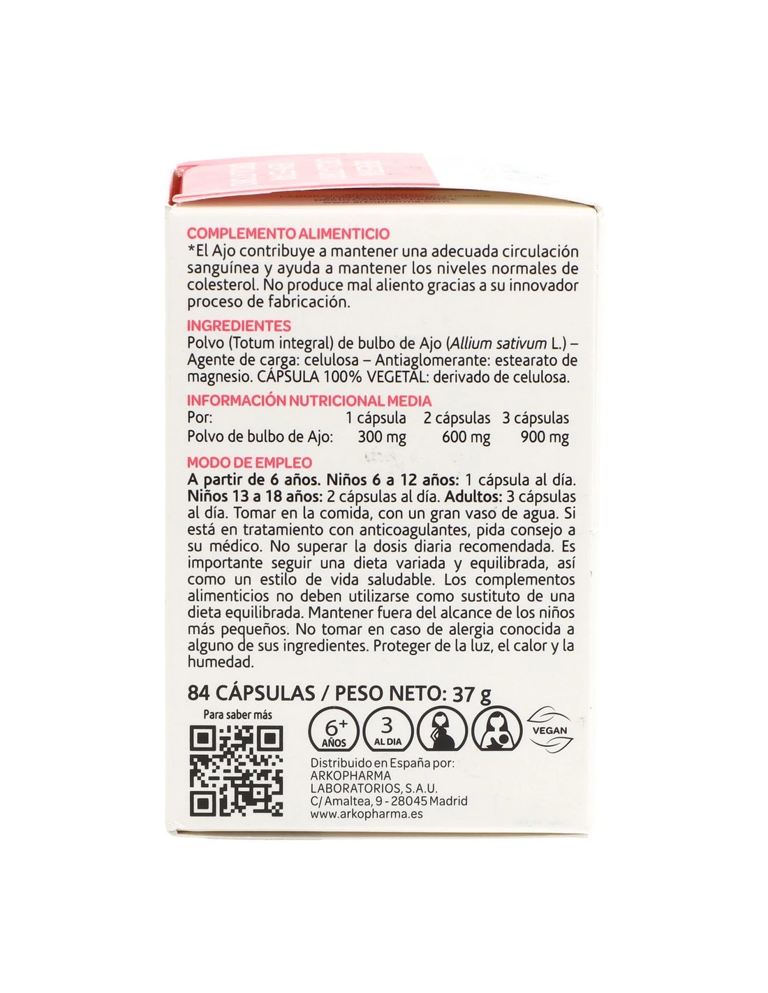 Arkocápsulas® Ajo es un complemento alimenticio especialmente diseñado para el bienestar circulatorio. El Ajo contribuye a mantener una adecuada circulación sanguínea y ayuda a mantener los niveles normales de colesterol.
