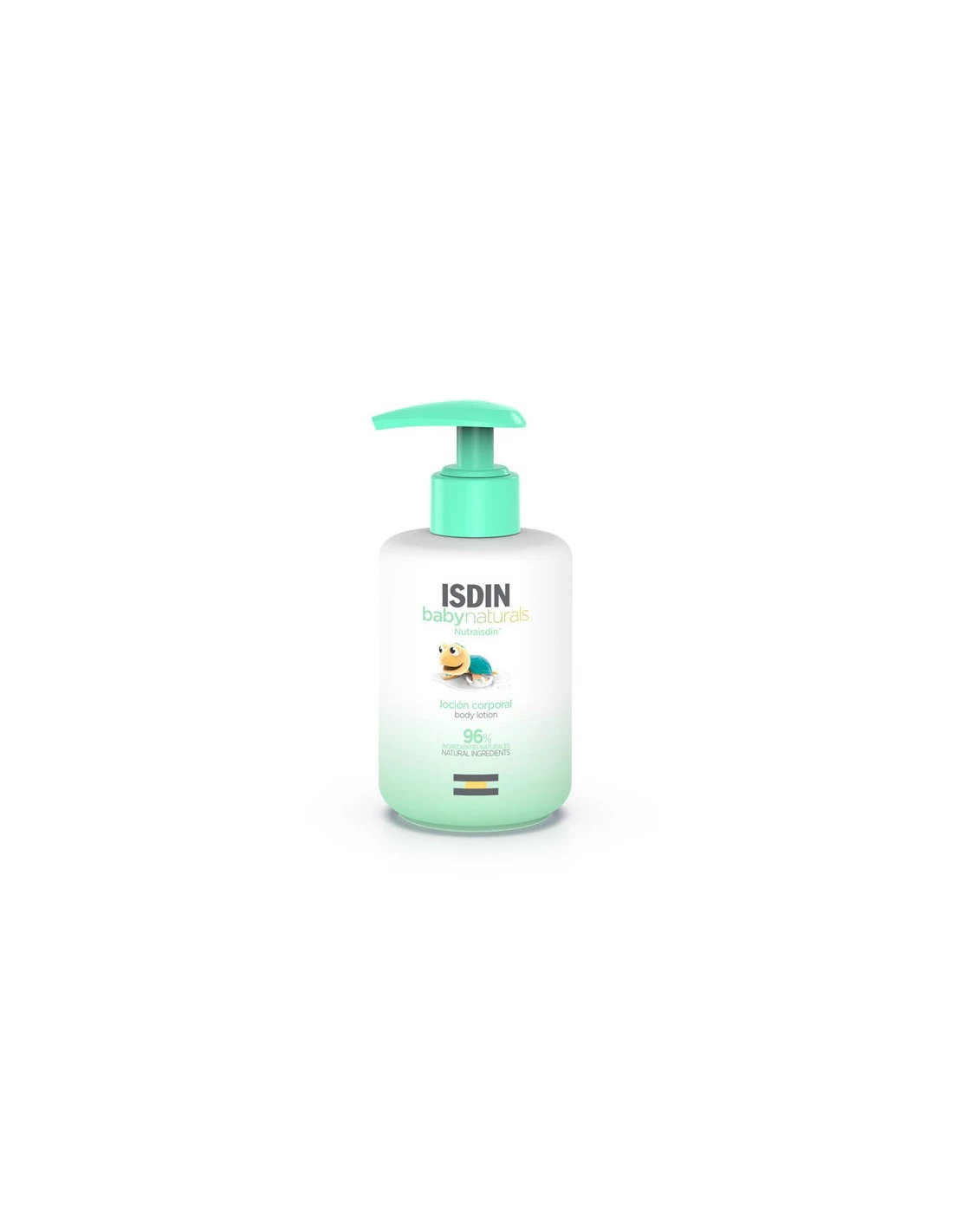 Loción corporal hidratante Baby Naturals Nutraisdin, ideal para el cuidado diario de la delicada piel del bebé. Su fórmula con un 96% de ingredientes naturales proporciona hidratación, protección y suavidad, sin dejar la piel pegajosa.