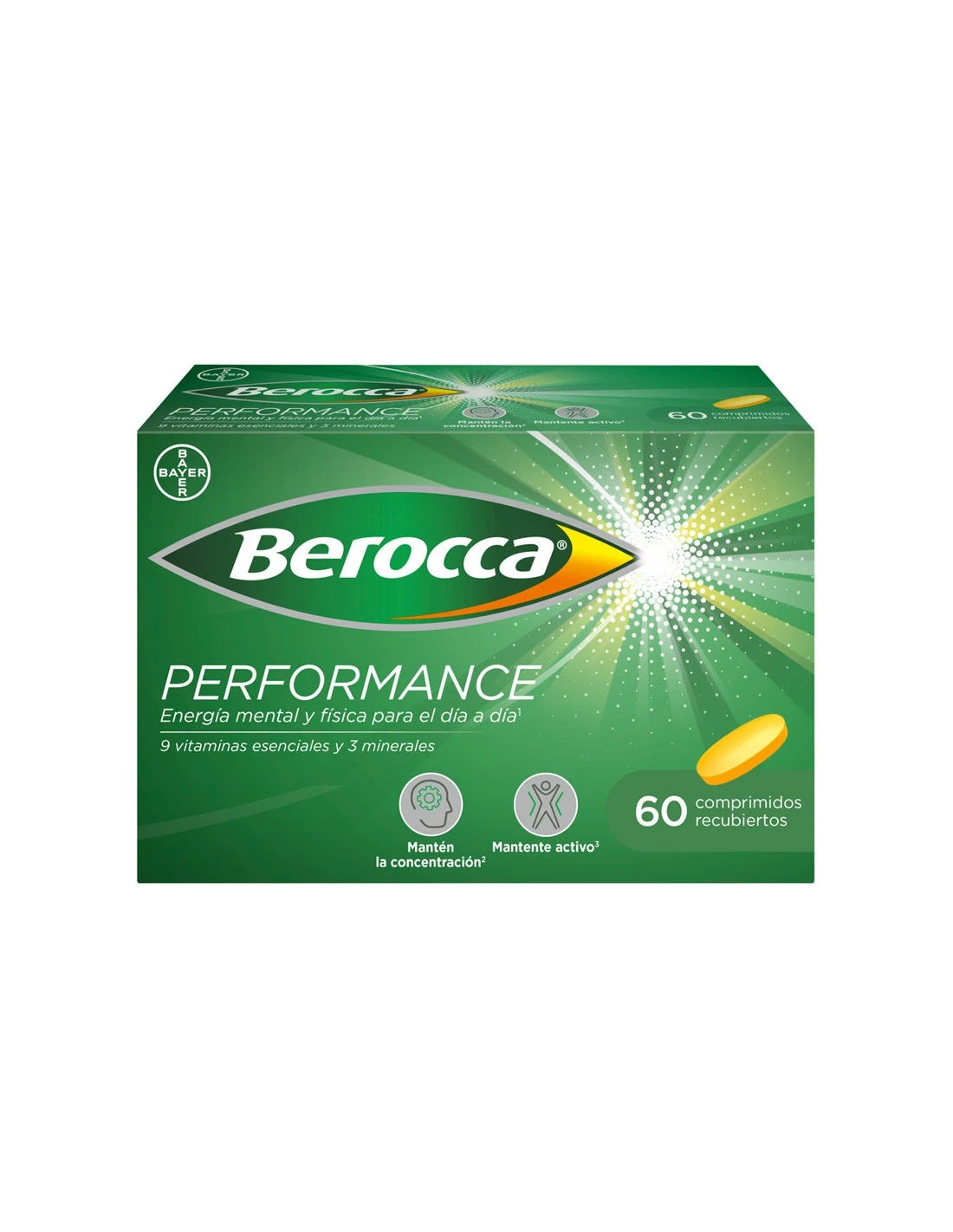 Berocca Performance 60 Comp es un complemento alimenticio diseñado para contribuir al rendimiento mental y físico, reduciendo el cansancio. Contiene vitaminas del grupo B, vitamina C, magnesio y zinc para apoyar el sistema nervioso, metabolismo energético, función psicológica y cognitiva como la concentración y la memoria.