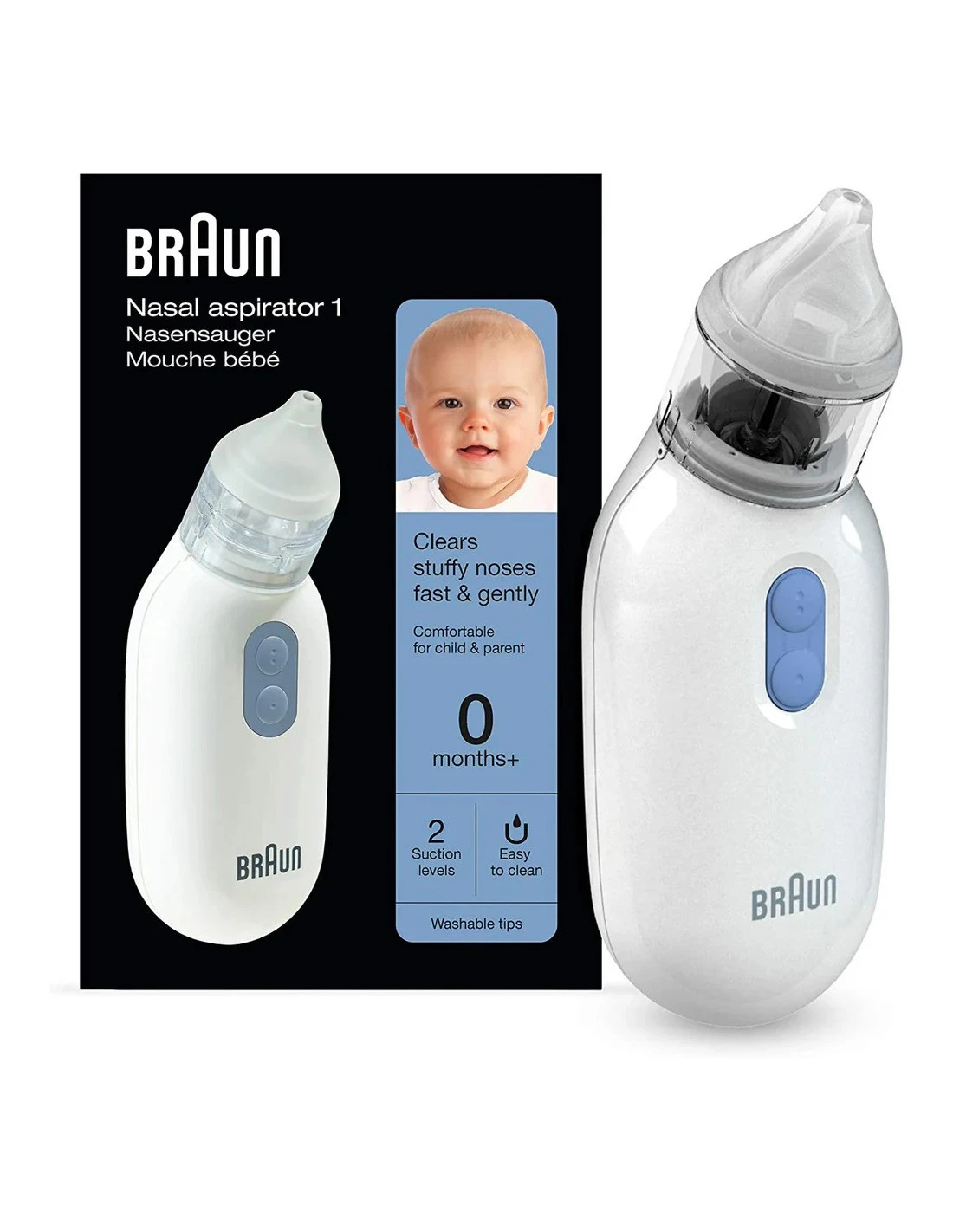 El aspirador nasal eléctrico Braun BNA100EU es un dispositivo especialmente diseñado para aliviar la congestión nasal en bebés desde su nacimiento. Equipado con dos niveles de succión ajustables, permite adaptar la intensidad según las necesidades del bebé, asegurando una limpieza eficaz y delicada. Su diseño ergonómico y funcionamiento silencioso hacen que su uso sea cómodo tanto para el bebé como para los padres. Además, incluye dos puntas nasales de diferentes tamaños para adaptarse al crecimiento del niño y una bolsa de transporte para facilitar su almacenamiento y movilidad.