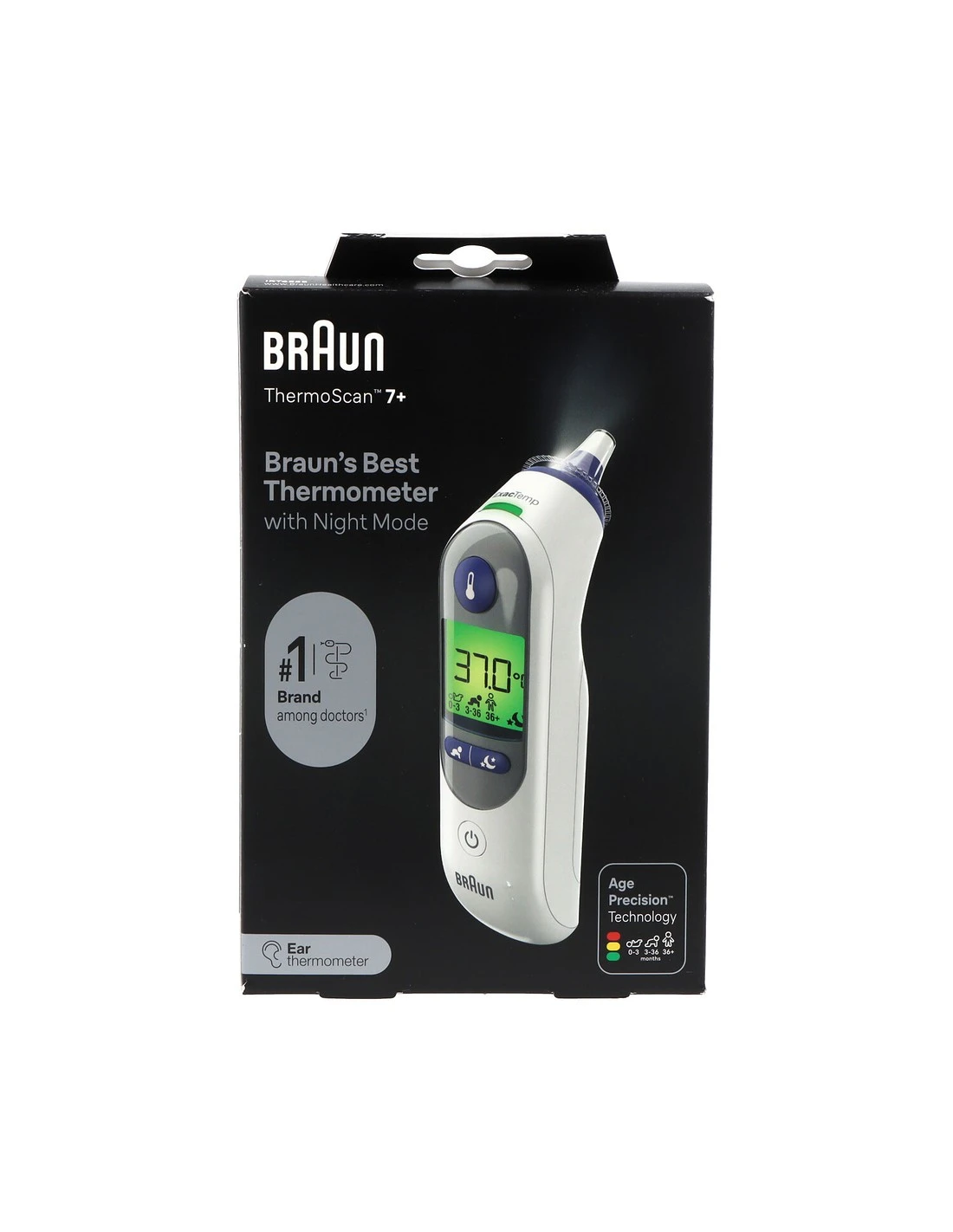 El Termómetro de Oído Braun ThermoScan® 7+ IRT6525 es un dispositivo avanzado que permite medir la temperatura de forma rápida y precisa. Gracias a su innovadora tecnología AgeSmart™, adapta la interpretación de la fiebre según la edad del usuario, brindando una referencia clara para toda la familia. Su punta precalentada garantiza mediciones exactas al reducir el enfriamiento del canal auditivo, y su modo nocturno, con luz incorporada y función silenciosa, facilita su uso sin interrumpir el descanso.