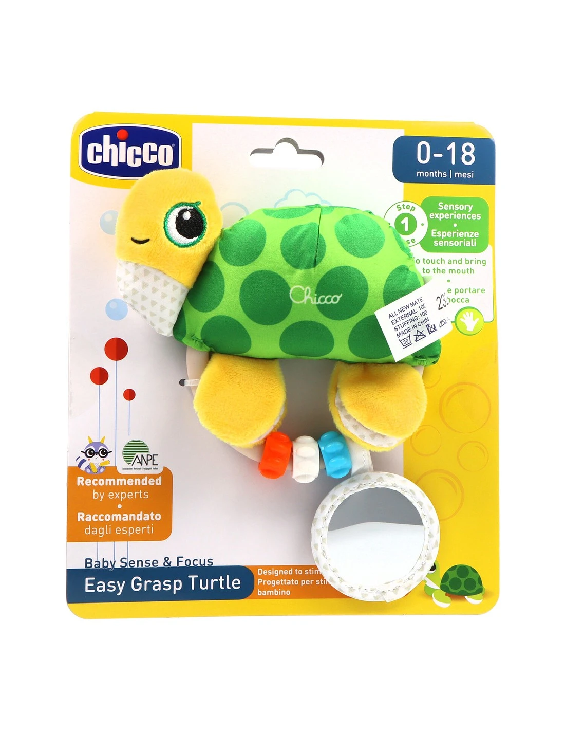 El Sonajero Tortuga de Tela de Chicco es un juguete ideal para los primeros meses del bebé, diseñado para estimular sus sentidos a través del tacto, la vista y el oído. Su estructura blanda y ligera facilita el agarre, mientras que sus distintas texturas y colores fomentan la exploración sensorial. Incorpora una anilla con cuentas de colores y un pequeño espejo, elementos que captan la atención del bebé y promueven su desarrollo cognitivo. Además, el suave sonido del sonajero interno refuerza la percepción auditiva y la coordinación mano-ojo.