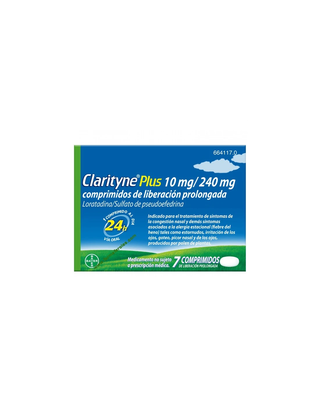 Clarityne Plus 10 mg/240 mg comprimidos de liberación prolongada se presenta en blisters con 1, 7, 10, 14, 20, 28, 30, 50 ó 100 comprimidos.