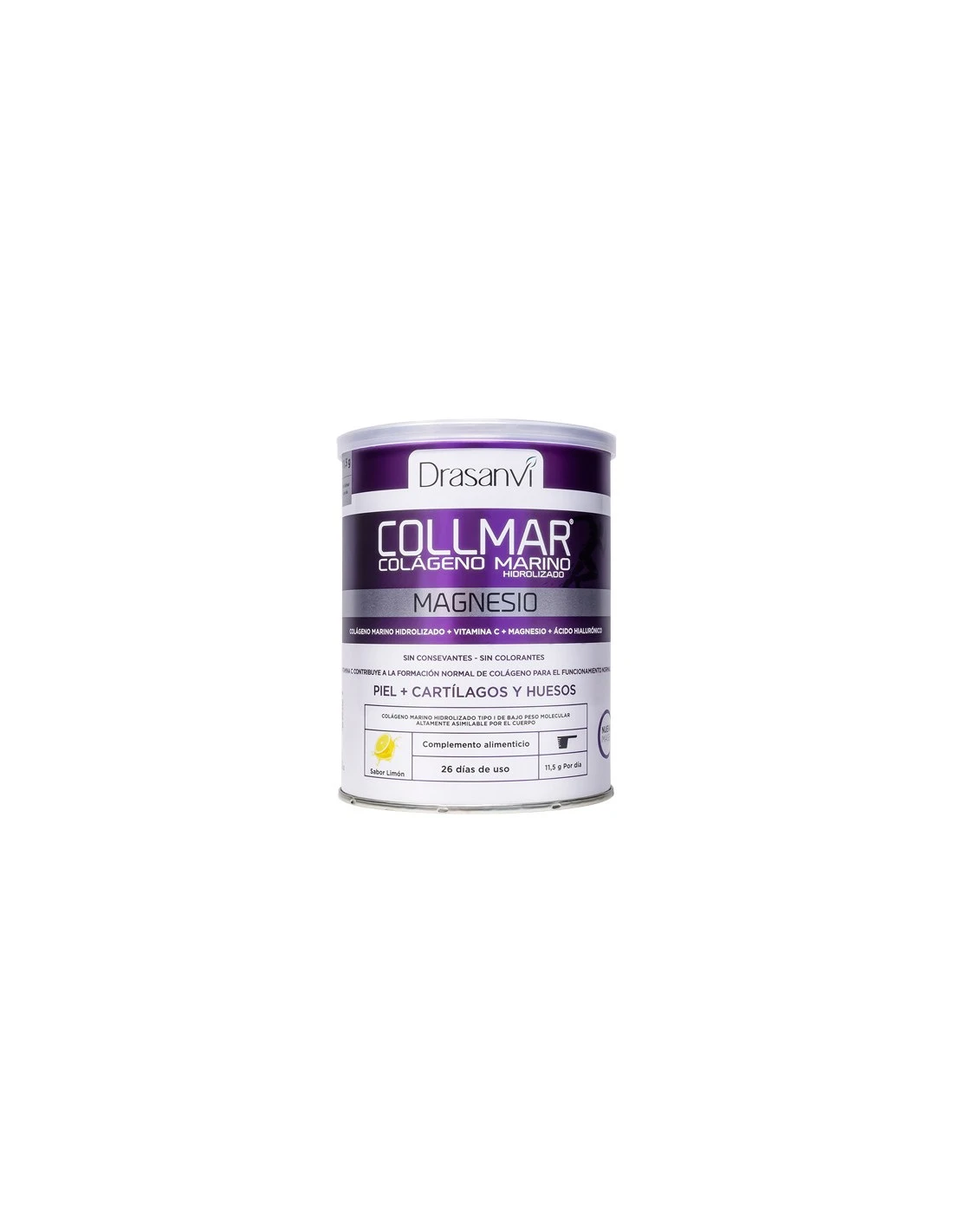 El componente principal de Collmar con Magnesio Sabor Limón es el colágeno marino hidrolizado, que ha demostrado ser altamente eficiente y absorberse fácilmente por el cuerpo. También contiene Magnesio, que es conocido por mejorar la función nerviosa y ósea. Además, se enriquece con ácido hialurónico y Vitamina C.