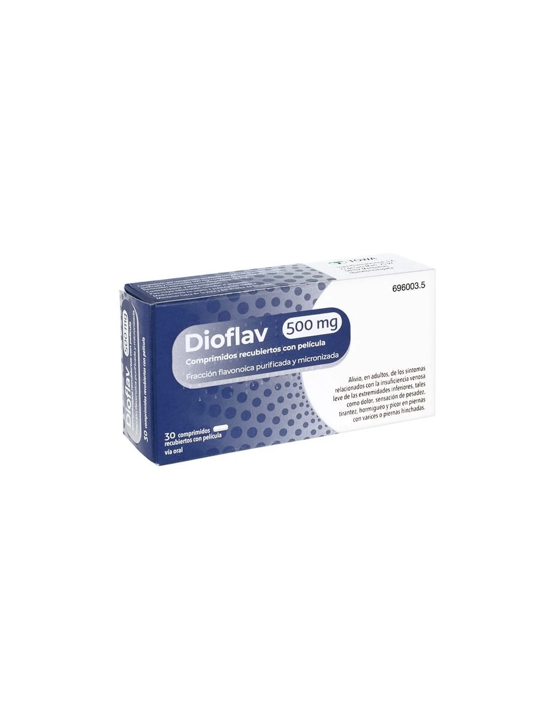 El principio activo es la diosmina (500 mg por comprimido).