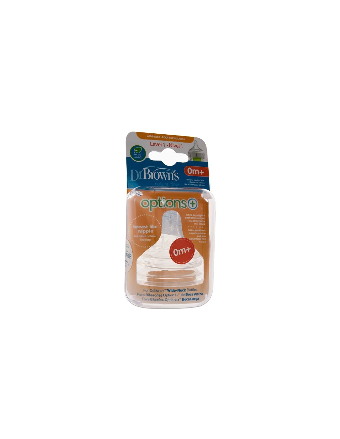 La tetina de silicona Dr Browns Options+ es perfecta para imitar la lactancia materna y garantizar un flujo exacto. Ideal para bebés desde el nacimiento.