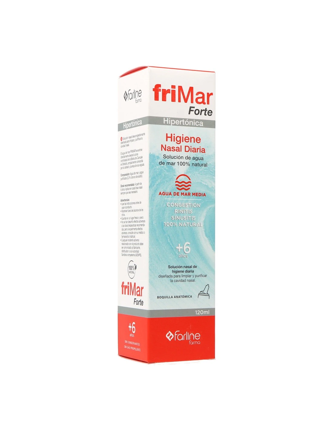 El spray nasal Farline Farma Frimar Forte Hipertónico 120 ml es una solución efectiva para ayudar a aliviar la congestión nasal. Ideal para resfriados, sinusitis, alergias y para uso diario, la fórmula hipertónica de agua de mar permite la descongestión natural.