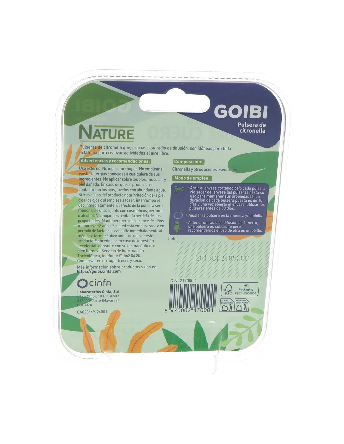 La **Pulsera de Citronela Goibi Nature** está elaborada con materiales resistentes al agua y cuenta con un diseño ajustable para mayor comodidad. Su radio de difusión es de aproximadamente un metro, lo que la hace ideal para actividades al aire libre como senderismo, camping o paseos.