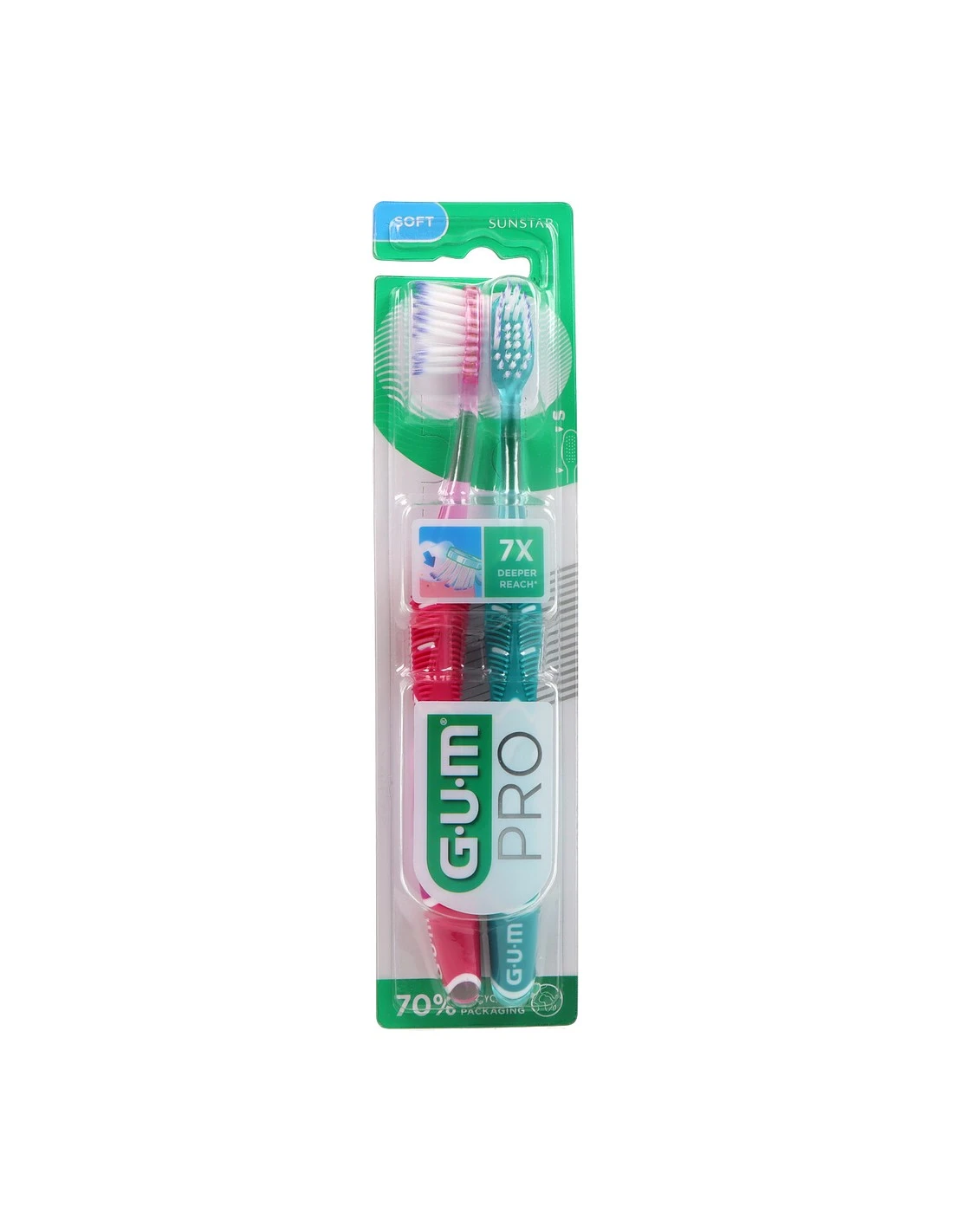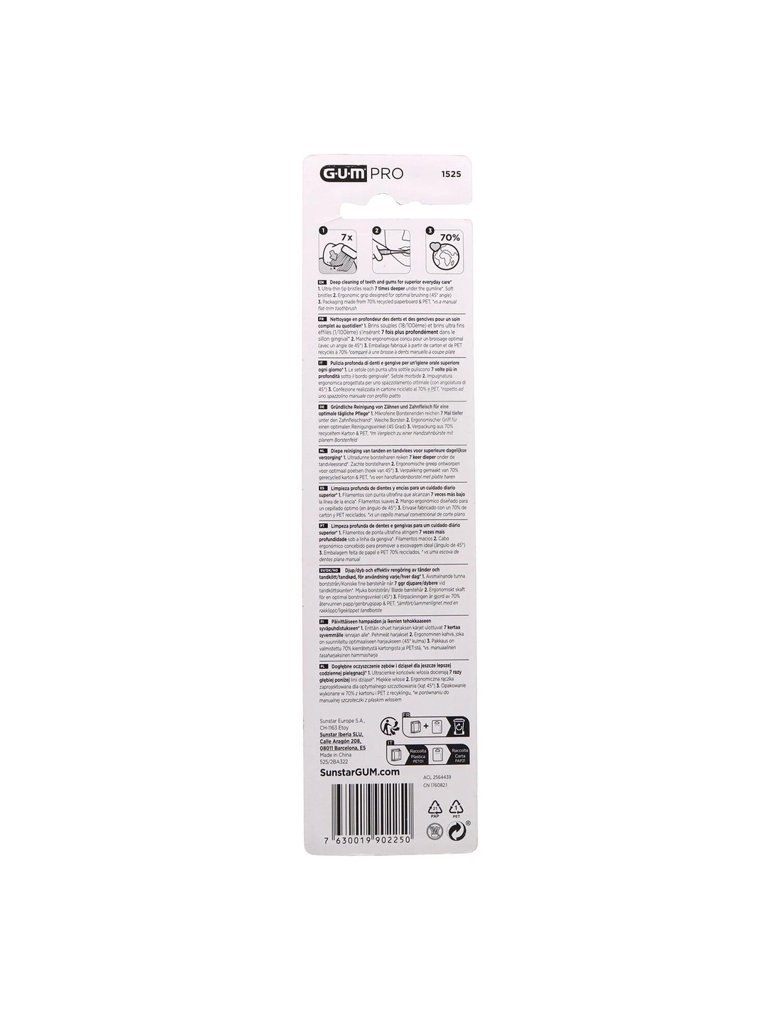El Cepillo Dental Adulto Gum 1525 Technique Pro Suave está diseñado para proporcionar una limpieza superior incluso en las zonas más difícil de alcanzar. Provee una efectiva remoción de placa dental en la línea de las encías y debajo de ella, ayudando a prevenir enfermedades gingivales y periodontales. Cuenta con cerdas extremadamente suaves y finas, y el cuello del cepillo se flexiona para absorber el exceso de fuerza del cepillado, protegiendo las encías. Además, su mango brinda un control y una comodidad formidable al usarlo. Este pack contiene dos cepillos.