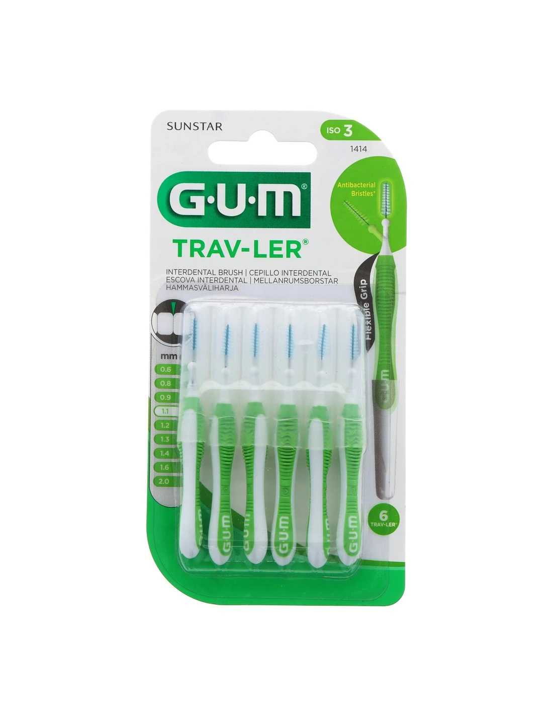 No fuerce el cepillo en espacios estrechos. Use el Gum Cepillo Interdental Travler 1414 con suavidad para evitar herir las encías y cambiarlo cuando las cerdas estén desgastadas. Es recomendable su uso bajo la supervisión de un adulto para niños menores de 10 años.
