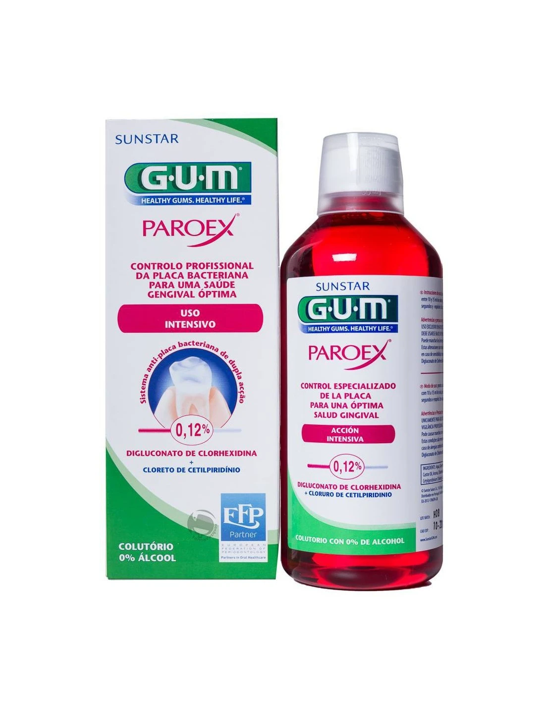 Paroex tratamiento colutorio de laboratorios GUM se encuentra especialmnte indicado para la prevencion de la gingivitis y la acumulación de placa.