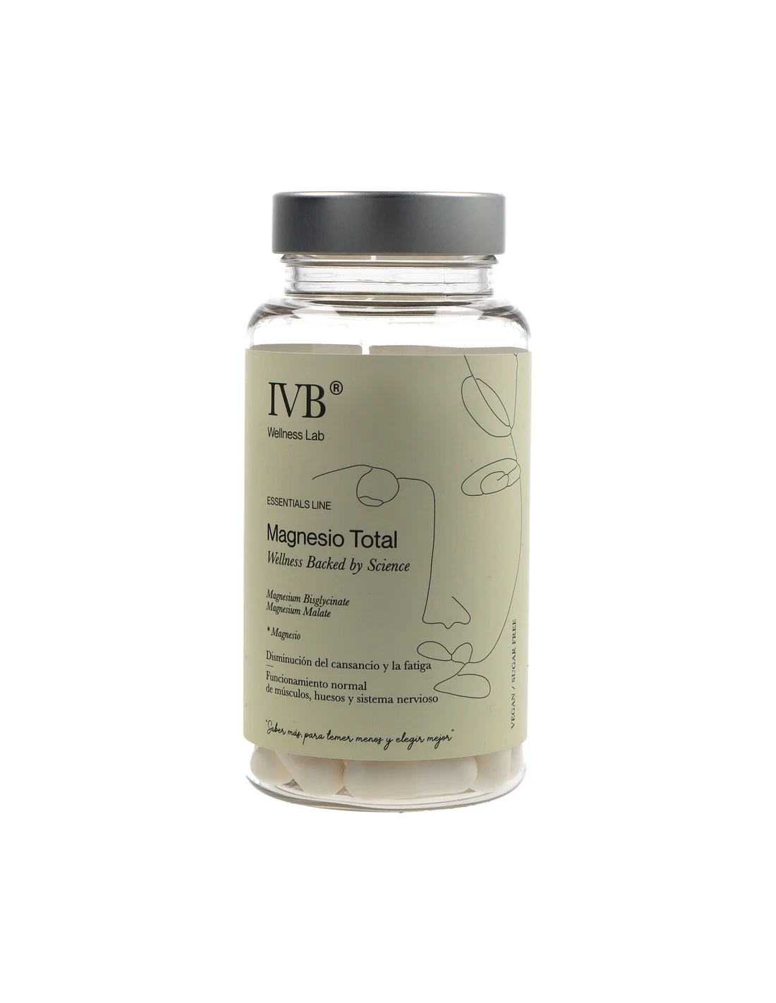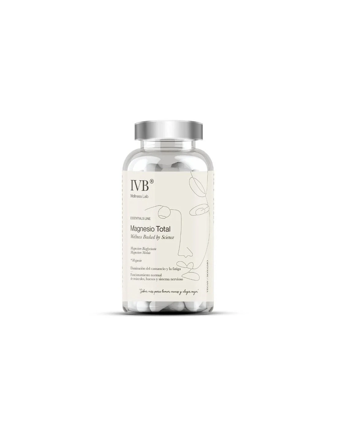 IVB Wellness Magnesio Total es un suplemento que aporta magnesio en formas de bisglicinato y malato, contribuyendo a múltiples funciones esenciales del organismo, como el metabolismo energético, la función muscular y la reducción del cansancio y la fatiga.