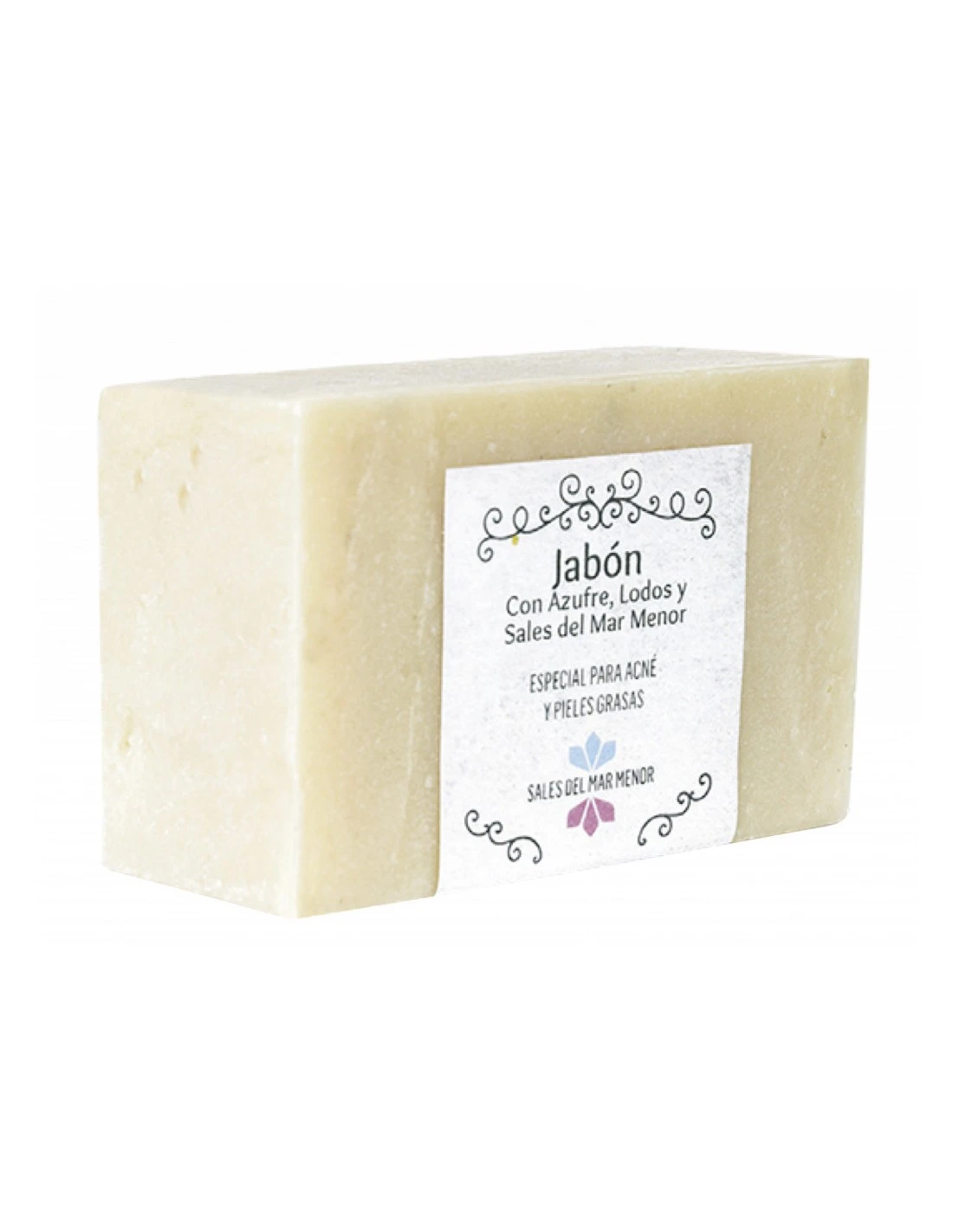 Este jabón combina las propiedades del azufre, los lodos y las sales del Mar Menor para ofrecer una limpieza profunda y efectiva. Especialmente formulado para pieles grasas y con tendencia al acné, ayuda a eliminar el exceso de sebo y a mejorar las afecciones cutáneas. Su uso regular contribuye a una piel más limpia, suave y equilibrada.