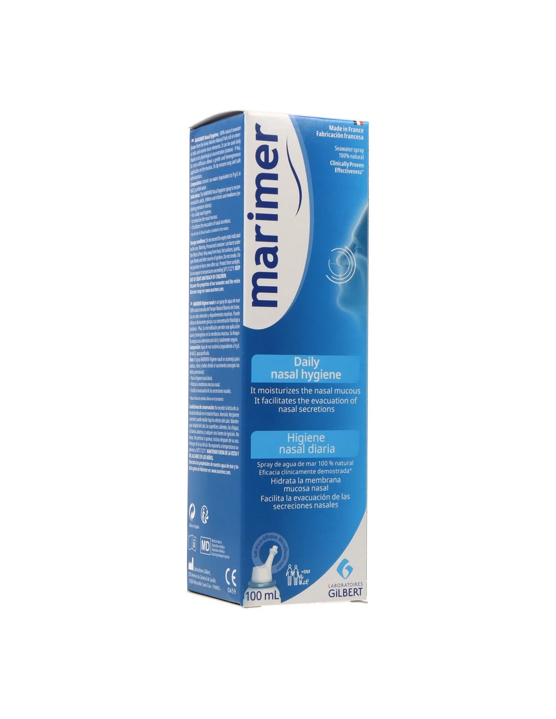 Especialmente diseñado para las afecciones del tracto nasal, el spray de agua de mar isotónica Marimer es un producto suave y eficaz que favorece la hidratación y la regeneración de la mucosa nasal. Gracias a su exclusiva tecnología de nebulización, su fórmula 100% natural compuesta por agua de mar pura y filtrada se dispersa directamente en las cavidades nasales para garantizar una limpieza suave y eficaz. Es una herramienta útil para aliviar los síntomas de un resfriado, sinusitis y otras afecciones de las vías superiores. Asimismo, es ideal para el uso diario para prevenir infecciones nasales.