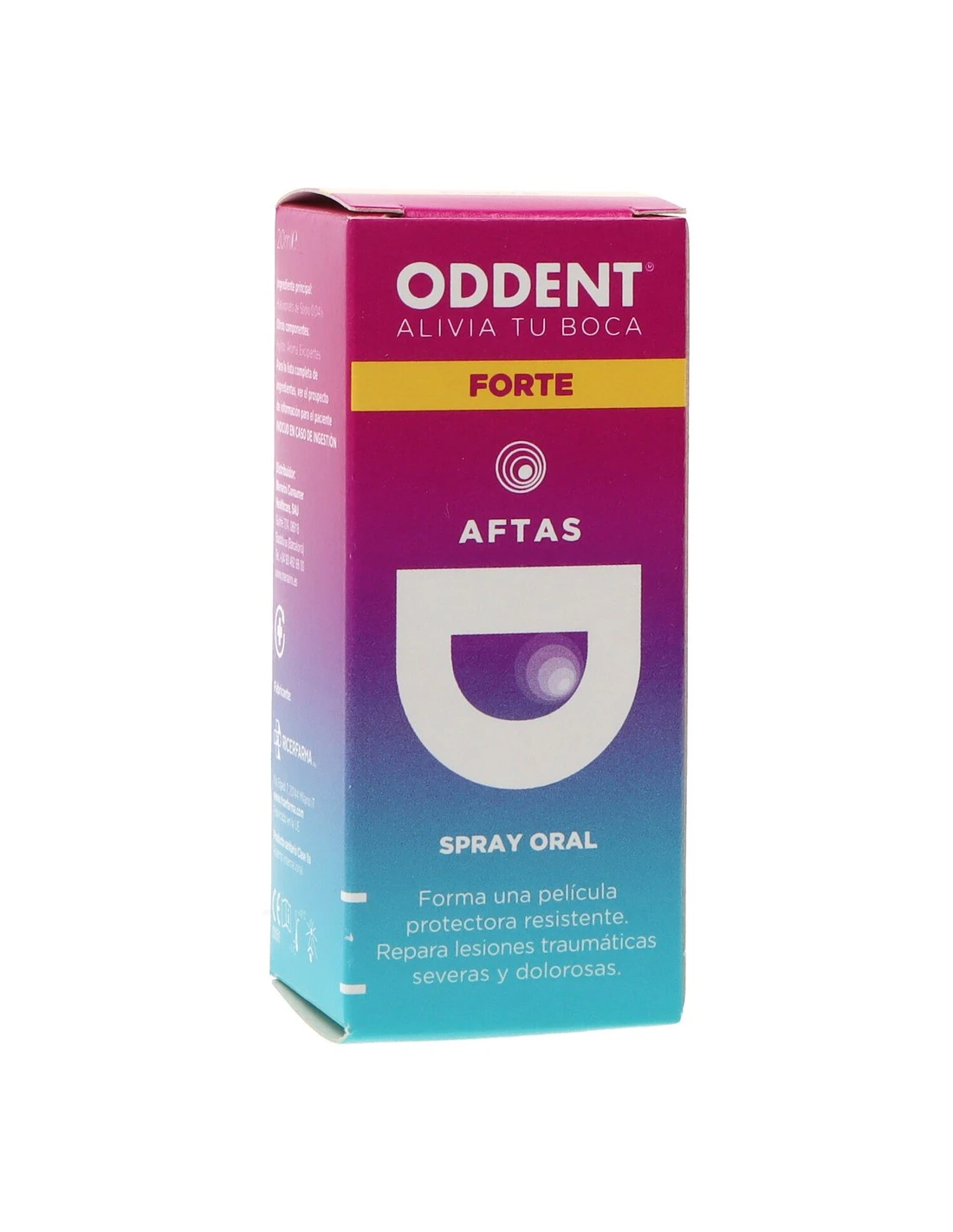 El Spray Oral de ODDENT® ayuda a aliviar el dolor y favorece la cicatrización de llagas y pequeñas heridas bucales. Contiene ácido hialurónico sintetizado biotecnológicamente y se aplica directamente sobre el tejido gingival o la zona a tratar.