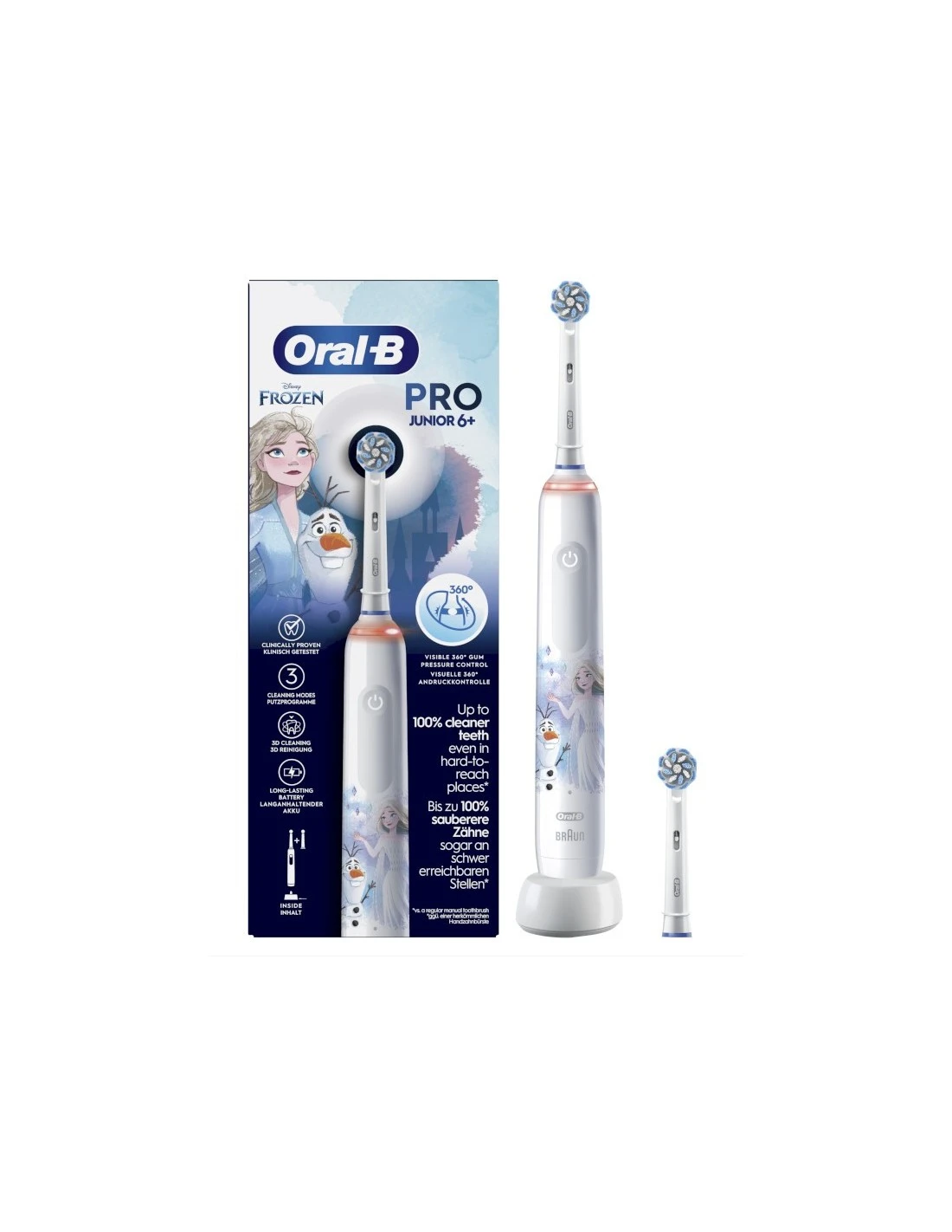– 1 mango recargable decorado con personajes de Frozen – 1 cabezal de cerdas suaves – 1 cargador