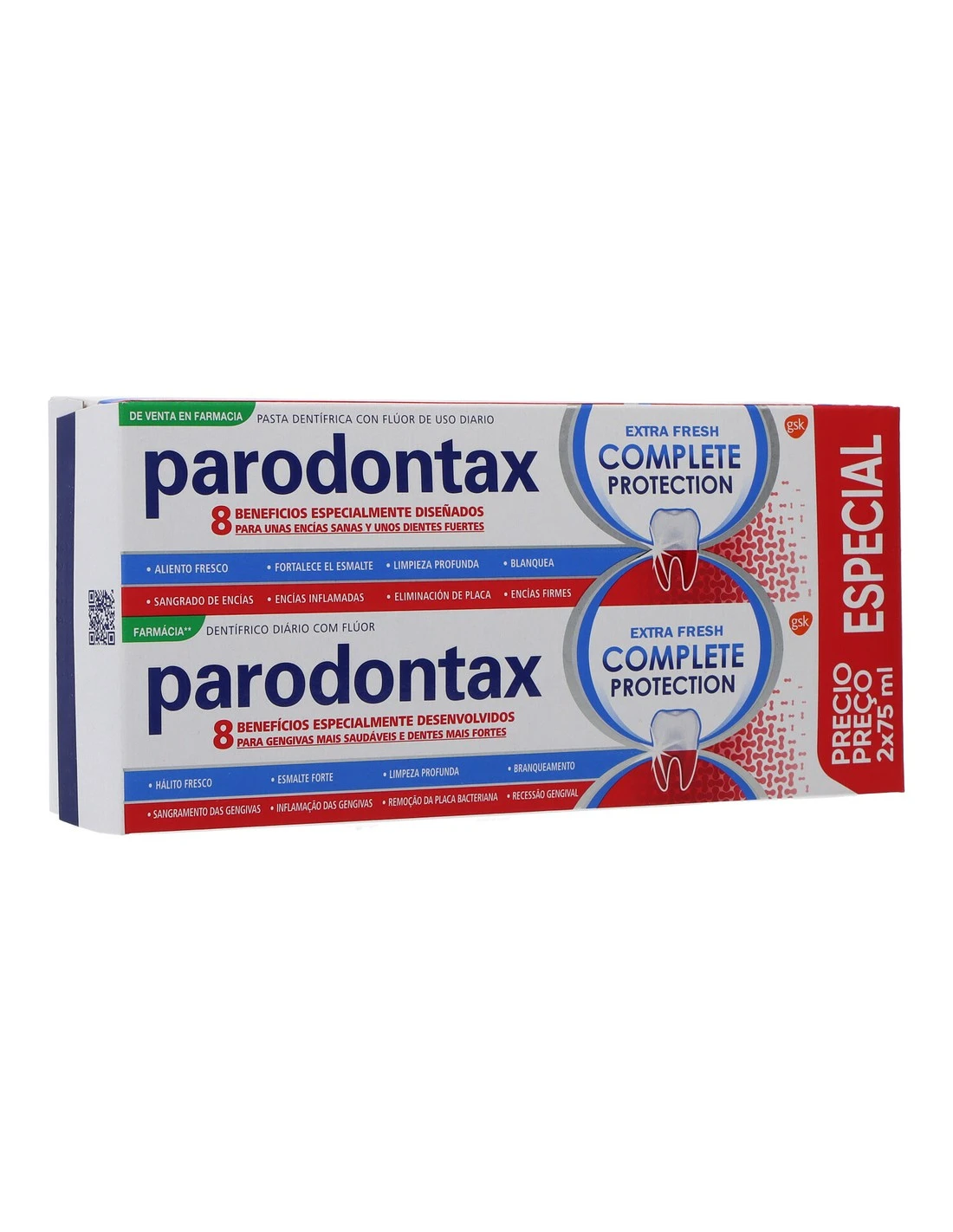 Parodontax Complete Protection Extra Fresh 2x75ml Promo es una pasta dental única diseñada para proteger y fortalecer las encías, prevenir la gingivitis y eliminar el mal aliento. Su fórmula exclusiva garantiza una limpieza eficaz, proporcionando frescor duradero.