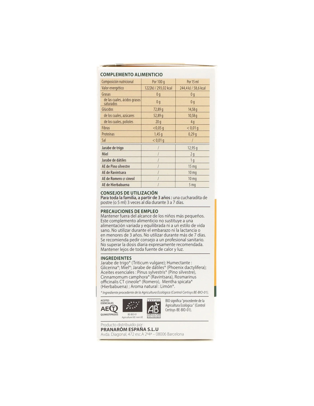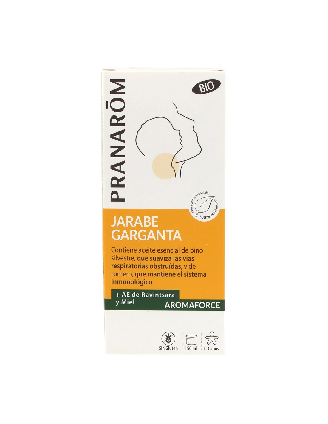 Pranarôm Aromaforce Jarabe Garganta es un remedio natural que ayuda a calmar las molestias en la garganta y facilita la respiración. Enriquecido con miel y aceites esenciales ecológicos seleccionados por sus propiedades balsámicas y purificantes, este jarabe está indicado para adultos y niños a partir de 6 años. Es ideal durante épocas de frío o cambios de estación, ya que contribuye a suavizar la garganta, aliviar la tos irritativa y reforzar las defensas respiratorias de forma suave y efectiva.