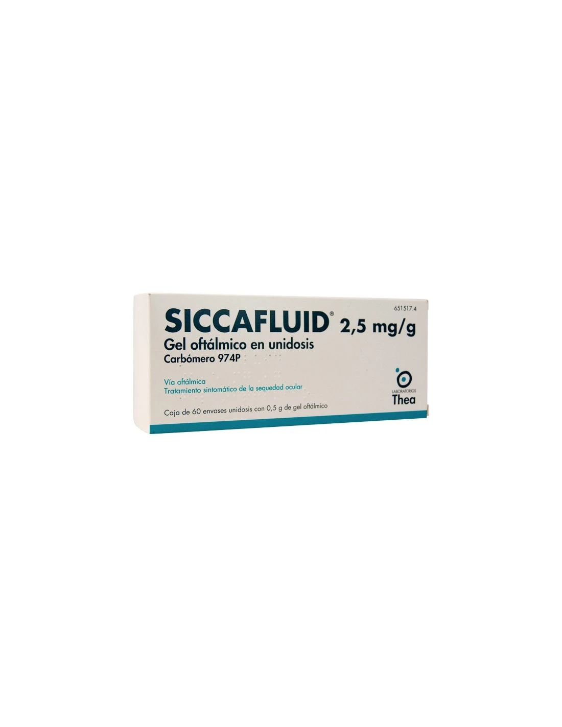 Gel oftálmico SICCAFLUID 2,5 MG/G 0,25% en monodosis para alivio del ojo seco y molestias. No recomendado en niños, embarazadas o en período de lactancia.
