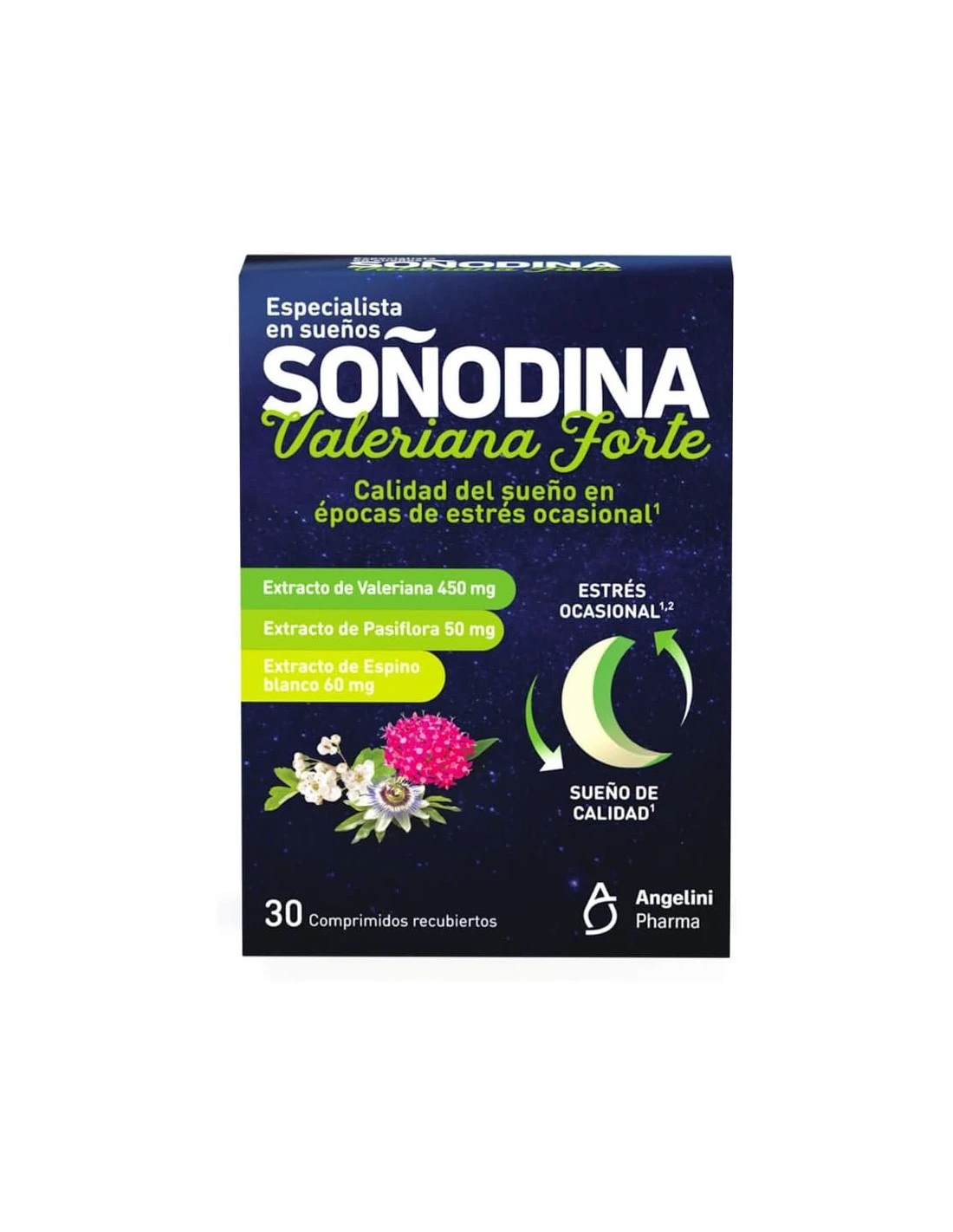 Es un complemento alimenticio con extractos de valeriana, pasiflora y espino blanco.