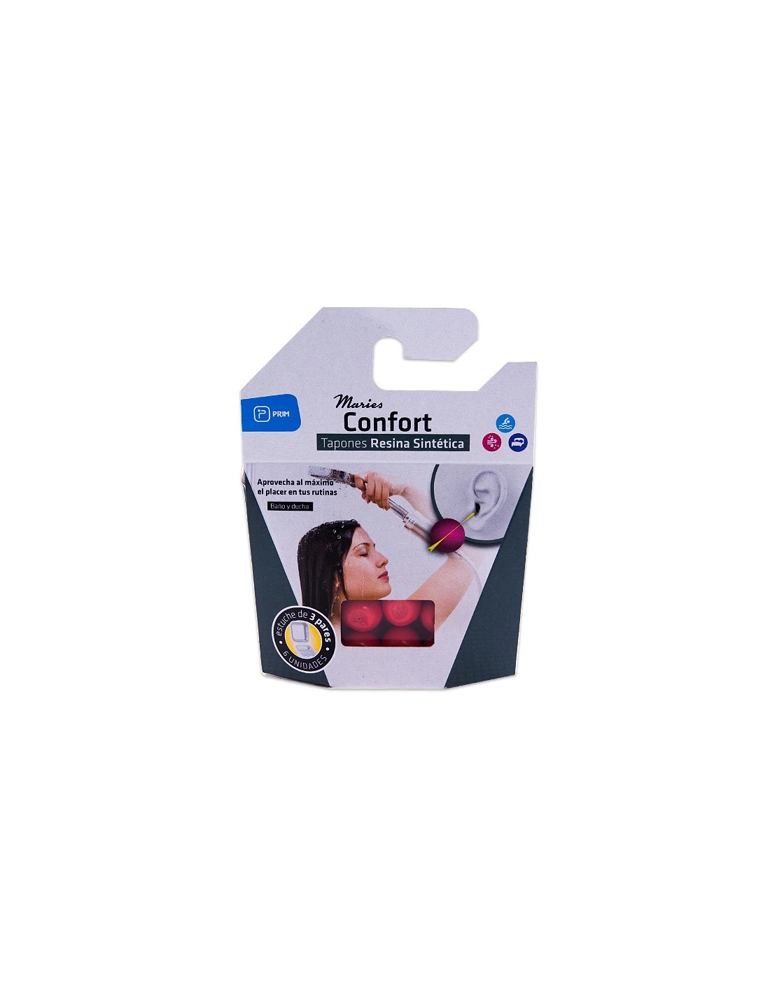 Tapones para los oídos Maries Sintet Prim de resina, ideales para proteger tus oídos del agua y ruido. Este pack contiene 6 unidades, perfectas para uso diario.