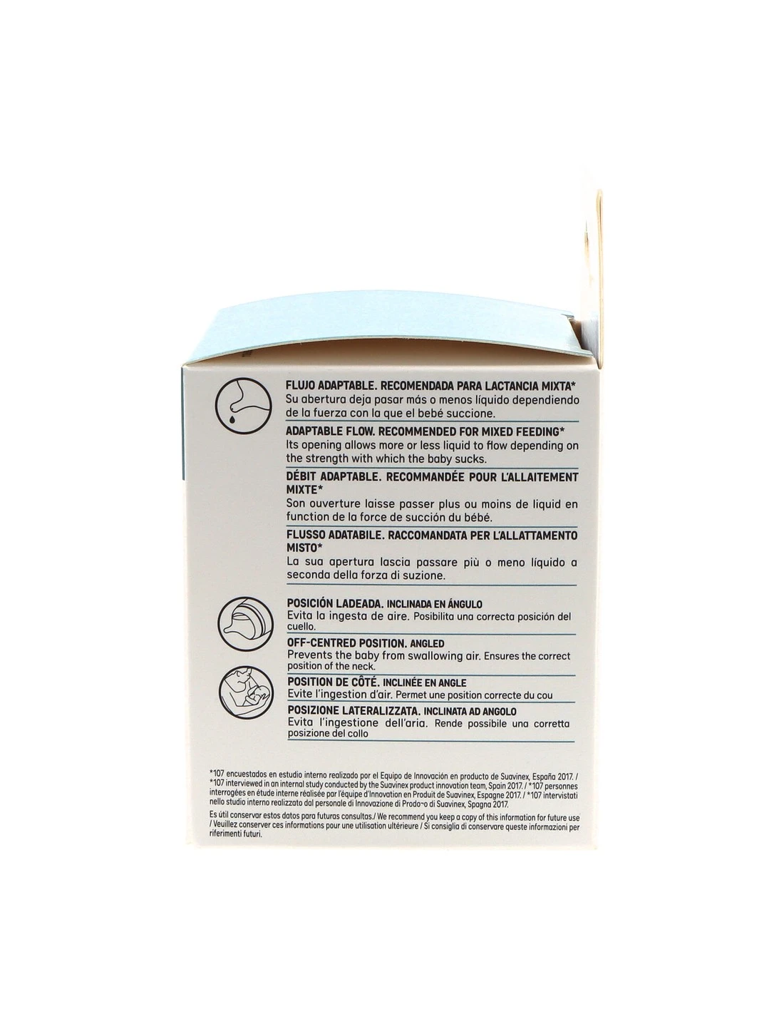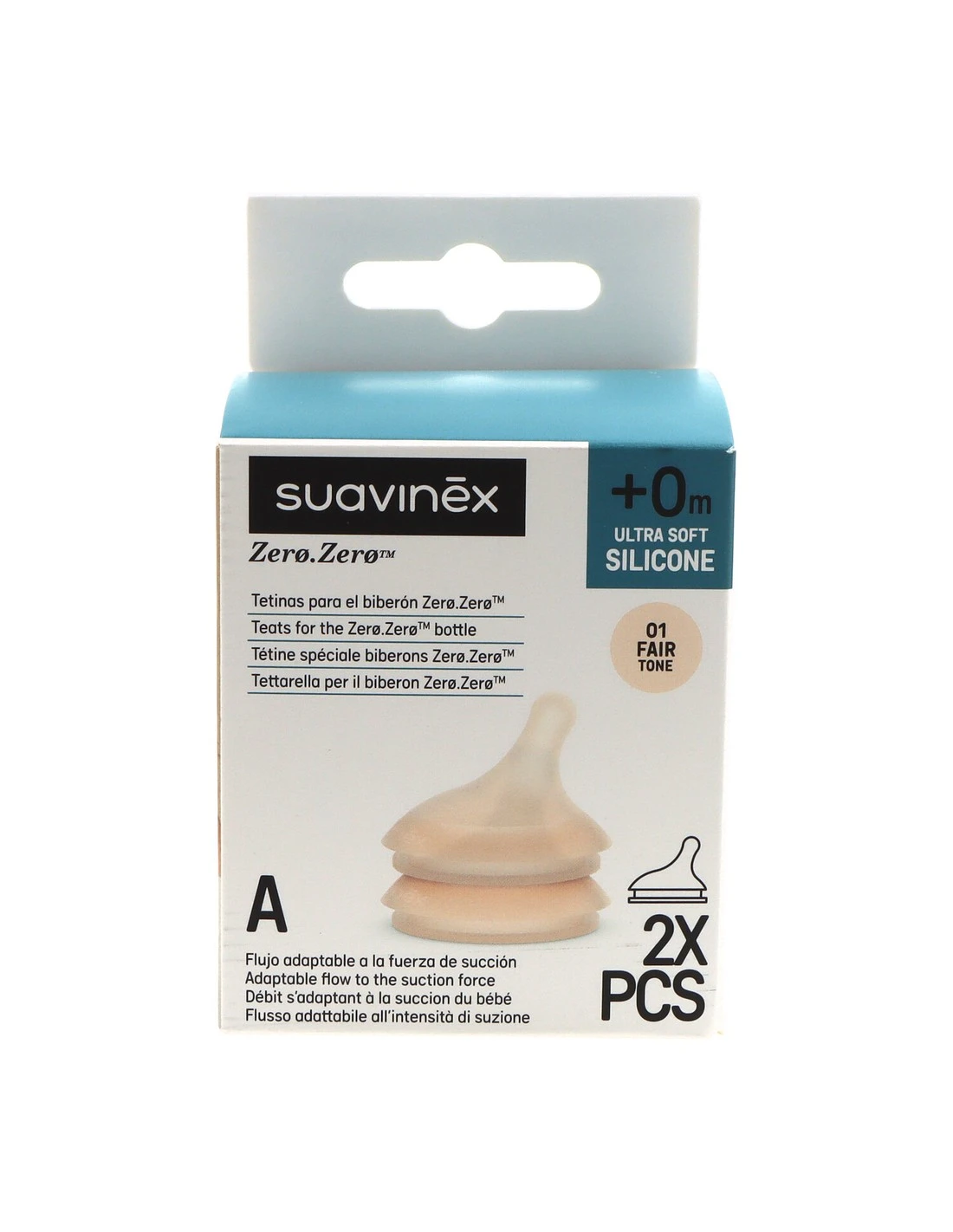 Las tetinas Zero Zero de Suavinex están diseñadas para ofrecer una alimentación cómoda y respetuosa desde el nacimiento. Fabricadas en silicona extrasuave, su textura y forma simulan el pecho materno, ayudando a reducir la confusión entre pecho y biberón. Incorporan un sistema de flujo adaptable que responde a la fuerza de succión del bebé, permitiendo que sea él quien regule el ritmo de la toma. Su diseño ergonómico contribuye a una experiencia más natural y agradable, ideal para combinar con la lactancia materna.