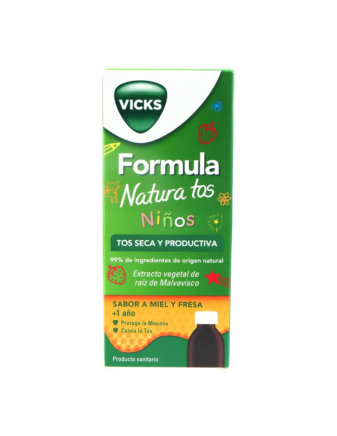 Apto para niños de 1 a 11 años. Mantener fuera del alcance de los niños y conservar en un lugar fresco y seco. No utilizar si hay alergia a alguno de sus componentes.