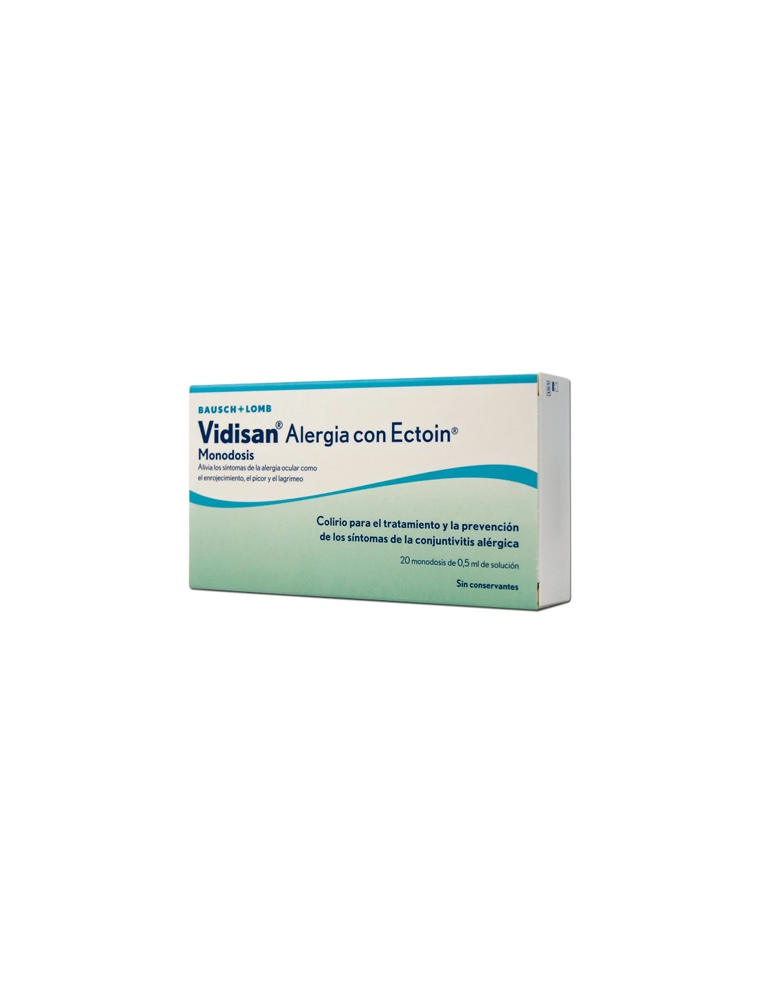 Vidisan Alergia Con Ectoin es un producto sanitario formulado para tratar y prevenir los síntomas de la conjuntivitis alérgica. Contiene Ectoin®, molécula protectora de células, y ácido hialurónico, que calma los ojos irritados.