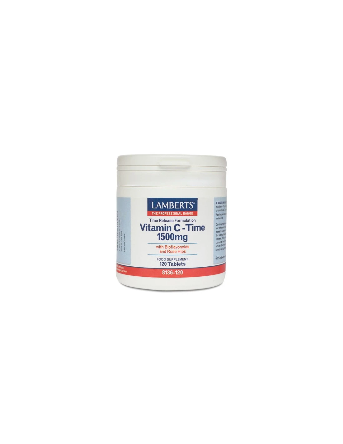 La Vitamina C 1500mg Bioflavonoides Retard 120 Comps de Lamberts es un suplemento altamente eficaz que favorece el bienestar general del organismo. Esta presentación tardía proporciona una liberación constante de vitamina C en el cuerpo durante un período prolongado, logrando un efecto sostenido y beneficioso sin la necesidad de administrar varias dosis al día. Los bioflavonoides mejoran la absorción y efectividad de la vitamina C, y ambos actúan en sinergia para brindar un refuerzo inmunitario, protección antioxidante y apoyo del colágeno para una piel sana, así como también para ligamentos y articulaciones.