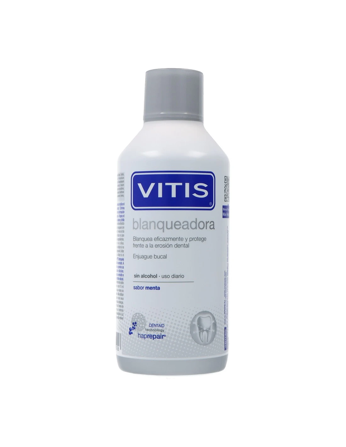 Colutorio VITIS Blanqueadora elimina manchas y previene su formación, devolviendo un blanco natural a los dientes sin dañar el esmalte, para una sonrisa más brillante y saludable.