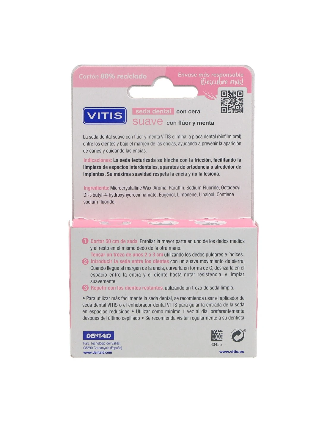 La Seda Dental Suave con Flúor y Menta de 55m de Vitis es esencial en cada rutina de higiene oral. Diseñado con fibras de seda suave, ofrece una limpieza segura y eficaz entre los dientes y a lo largo de la línea de las encías, eliminando placas y restos de alimentos donde el cepillo de dientes no puede alcanzar. Infundido con flúor, esta seda dental suave combate las bacterias y protege contra la caries. También está enriquecido con un fresco sabor a menta para un aliento fresco y limpio.